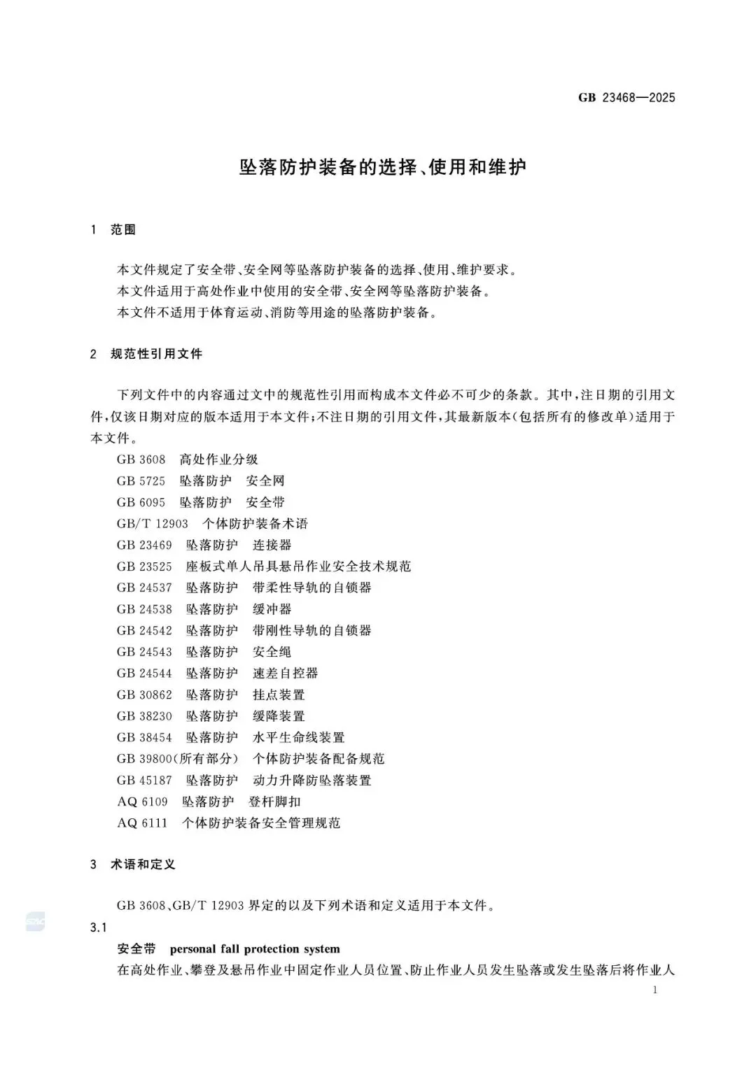 重磅|GB 23468-2025正式发布:推荐→强制!2026年9月1日起实施,高处作业全行业强制执行(含全部强制性条文+条款号)