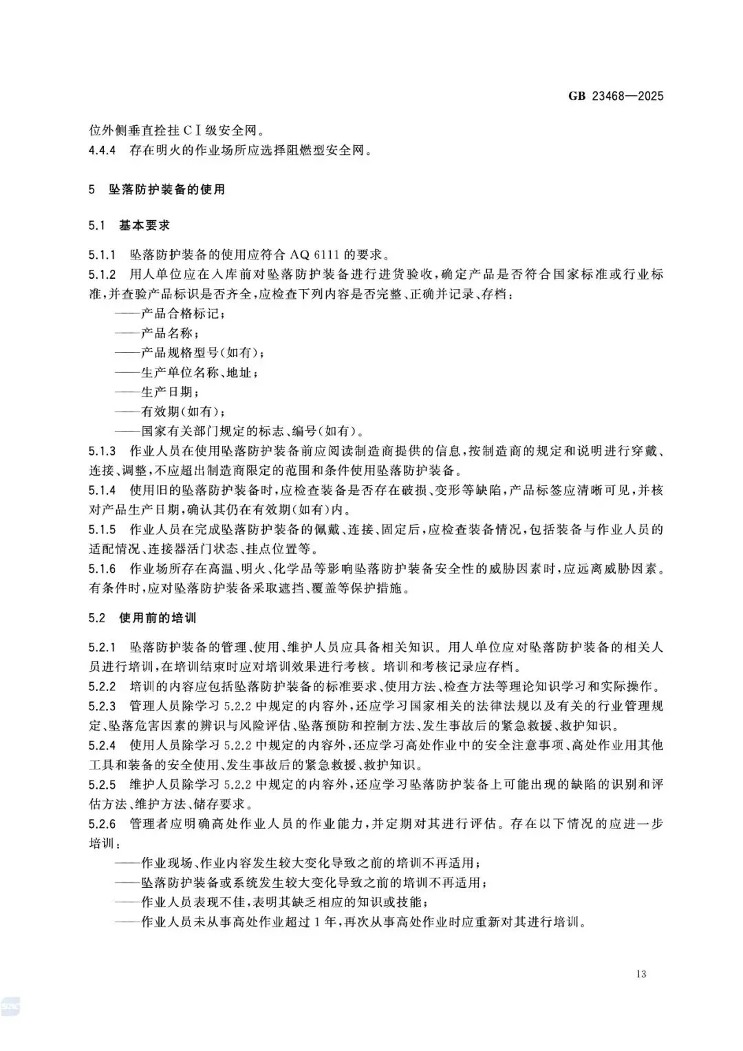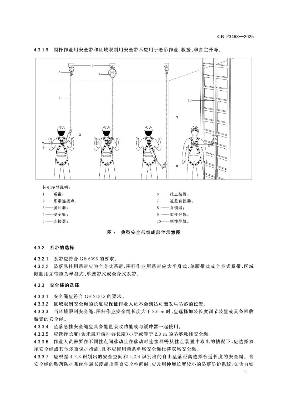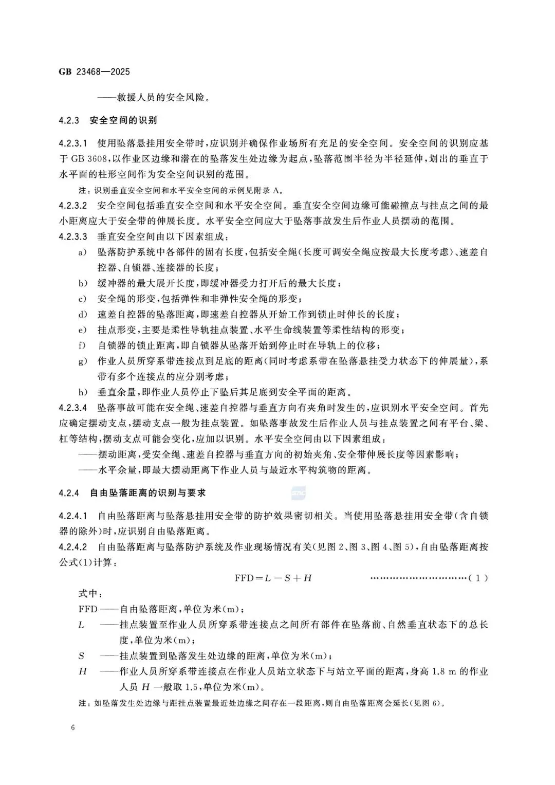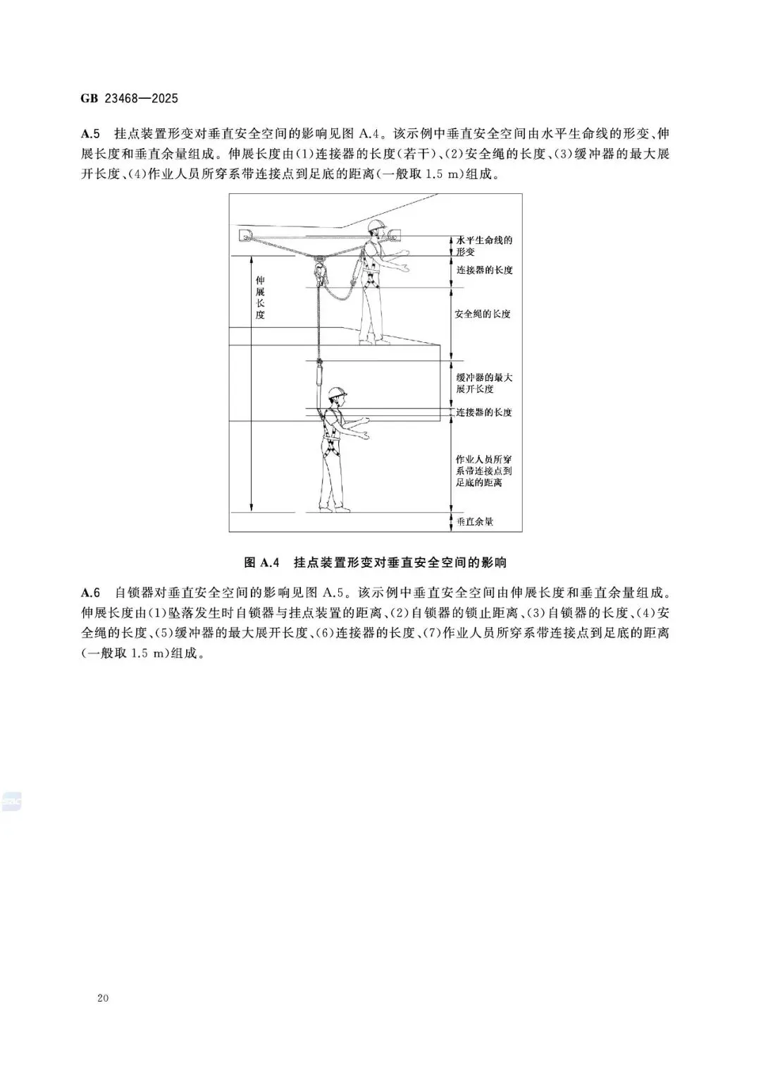 第5章对佩戴、连接、挂点、安全空间、作业限制做出强制规定: