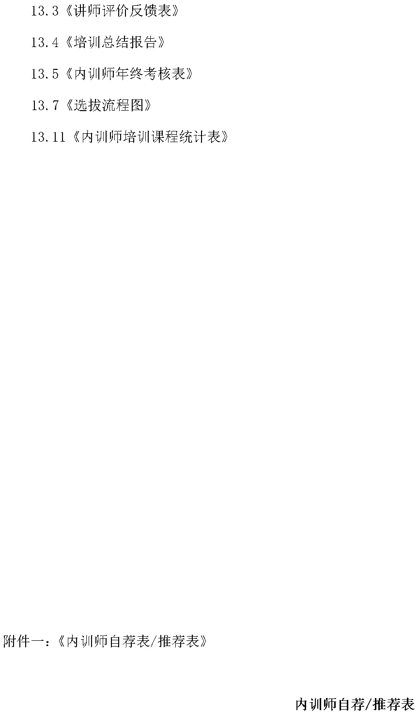 企业内部培训师管理制度(Word模板)本资料为《企业内部培训师管理制度(Word模板)》,欢迎加入会员领取!(查看领取方式:关注本公众号-->后台回复“领取模板”)::: 资料整理不易,请转发集赞或加入会员领取 :::声明:本资料来源于互联网,版权归原作者所有。如有侵犯您的版权,请联系25198734@qq.com,我们将立即处理。觉得不错,请点“赞”或者点击“在看”,谢谢↓↓↓