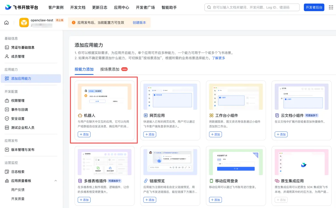 每个飞书应用都要发布,未发布时通常无法正常搜索和使用。