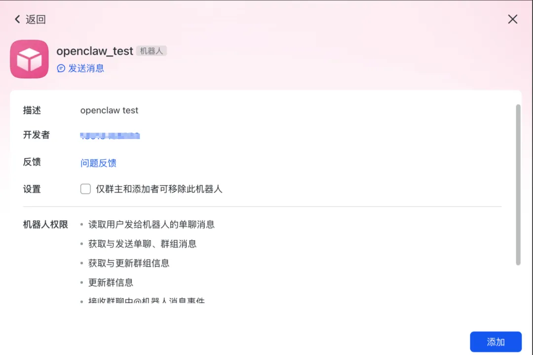 注意:机器人只能被添加到同一企业下的群聊,外部群通常不可用。