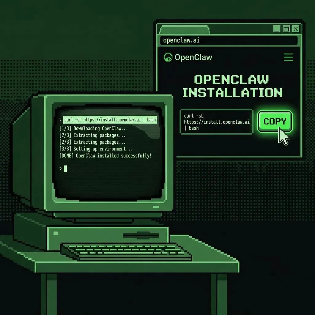 去 openclaw.ai,复制安装命令,粘贴进终端,回车。