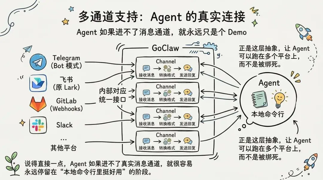 说得直接一点,Agent 如果进不了真实消息通道,就很容易永远停留在“本地命令行里挺好用”的阶段。