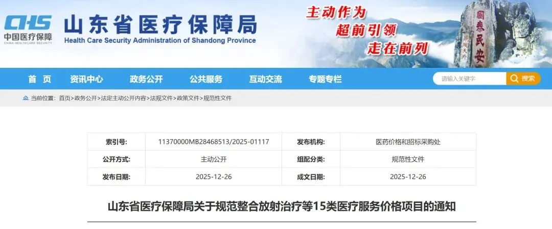截止到25年12月底,山东医保局已经规范整合20多个医疗服务价格项目。