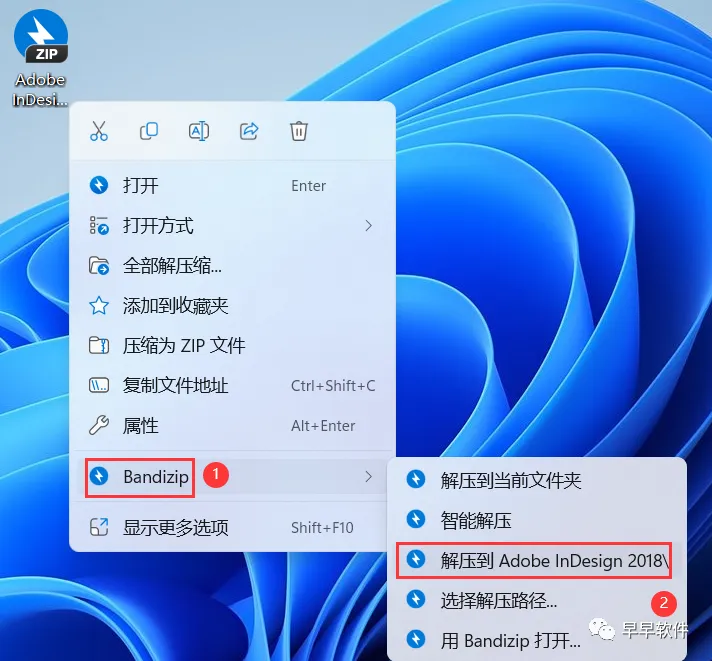 1、下载Adobe InDesign 2018软件安装包到电脑上,右键选择【解压到Adobe InDesign 2018\】