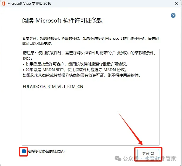 4.勾选【我接受此协议的条款】,点击【继续】。