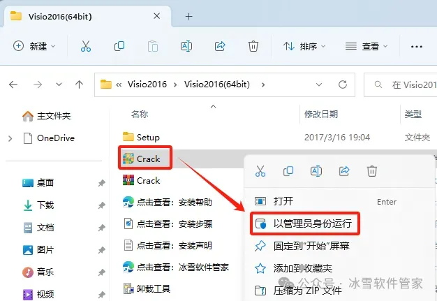 10.鼠标右击解压出来的【Crack】选择【以管理员身份运行】。