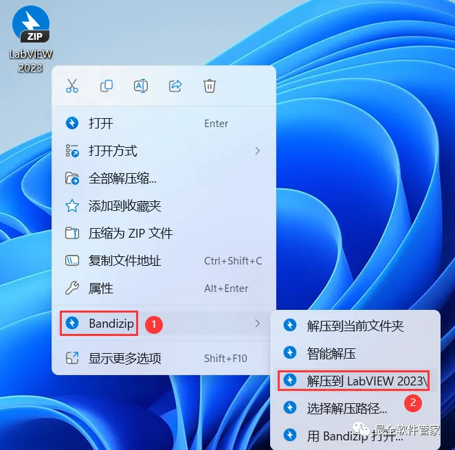 1、下载LabVIEW 2023软件安装包到电脑上,右键选择【解压到LabVIEW 2023\】