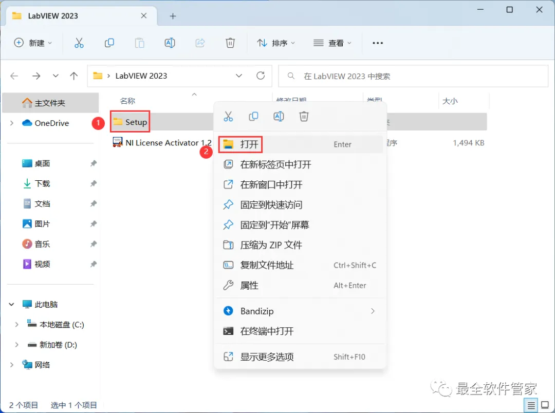 15、回到LabVIEW 2023文件夹,找到【NI Lincese Activator 1.2】应用程序,右键选择【以管理员身份运行】它