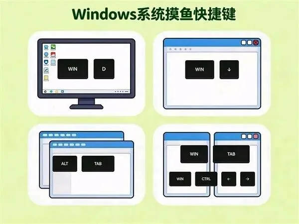 官方还公布了专属"摸鱼快捷键",可以让大家更方便偷菜,windows的快捷键WIN+D一键返回桌面,ALT+TAB快速切窗口。