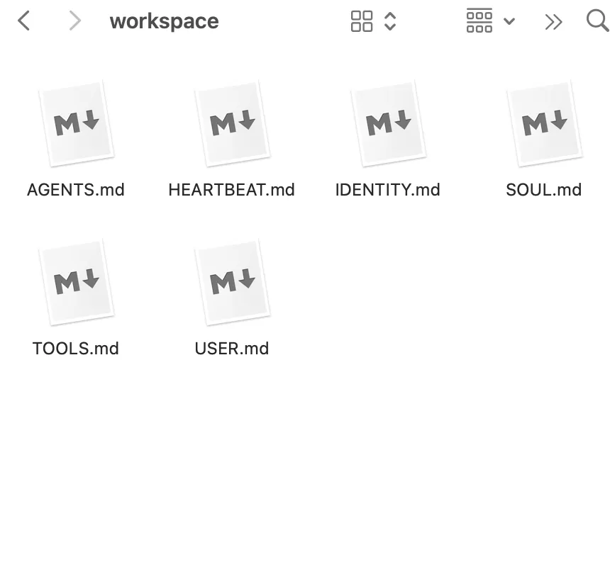 我们进入workspace 这个文件夹,这个文件夹里面的内容就是他的记忆所在了。下面依次对这些文件进行介绍。
