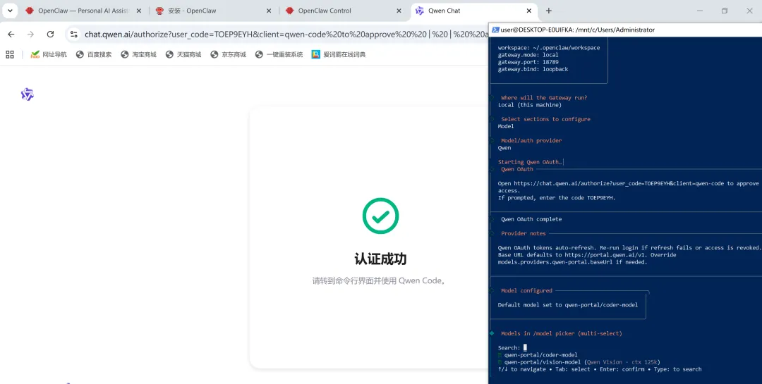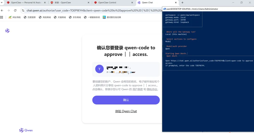 通过内置的任务管理器,我可以观察龙虾的每一个思考步骤,并最终完成认证授权。