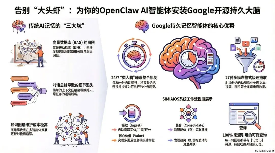 OpenClaw🦞养成记之为何你的那只大头虾总忘事?因为它缺了这个Google开源的大脑