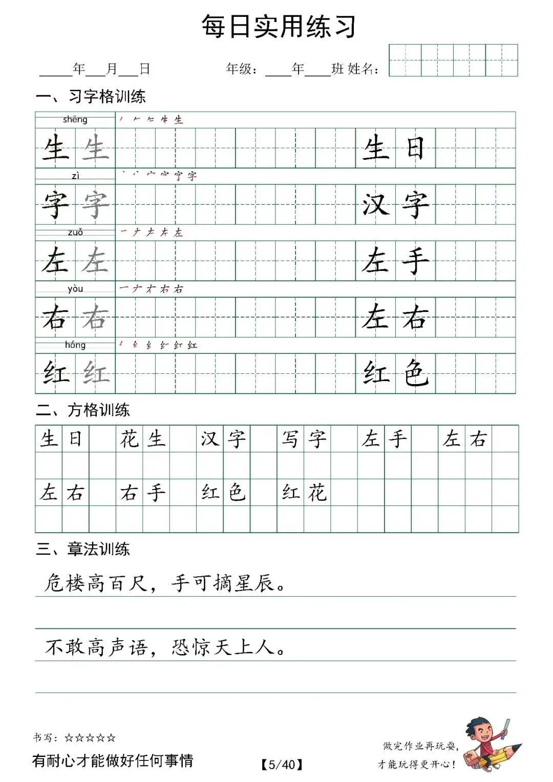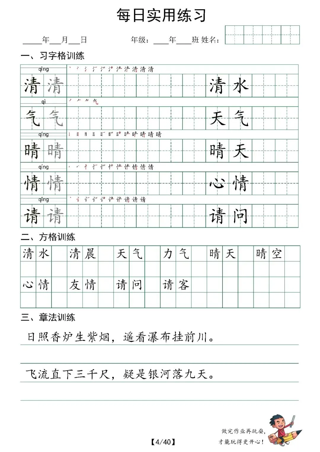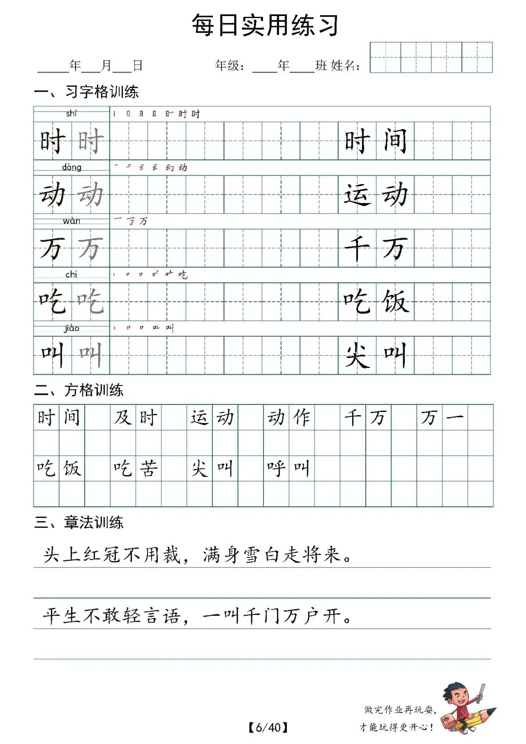 小学语文1—6年级下册每日实用书写(附下载链接)