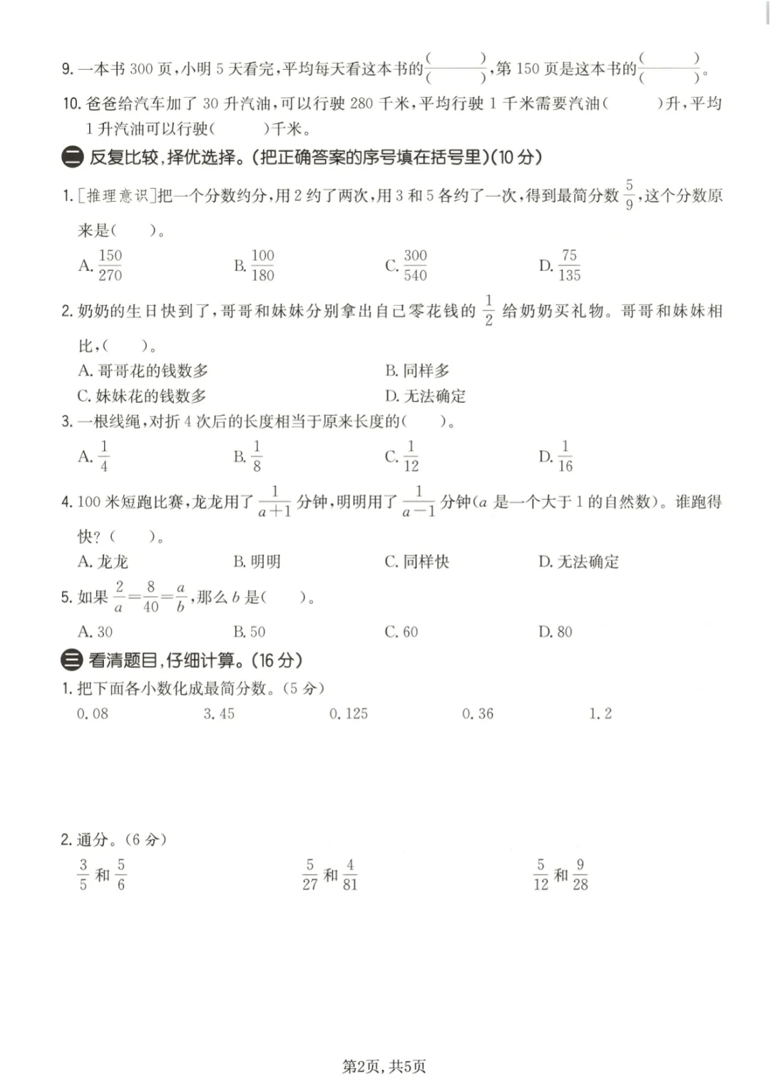 【免费下载】五年级(下)数学 第四单元拔尖测试卷《苏教版》,PDF电子版,可打印,共5页
