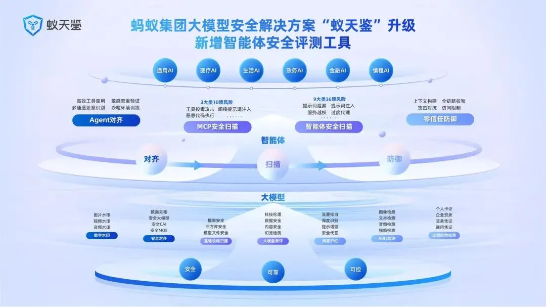 此外,蚂蚁在内部也已经搭建起面向大模型的安全体系,例如针对提示词注入、工具调用链路以及数据泄露风险的检测机制,逐步覆盖从输入到执行的完整链路。这些能力,恰好对应的正是当前 Agent 最容易出现问题的几个关键环节。
