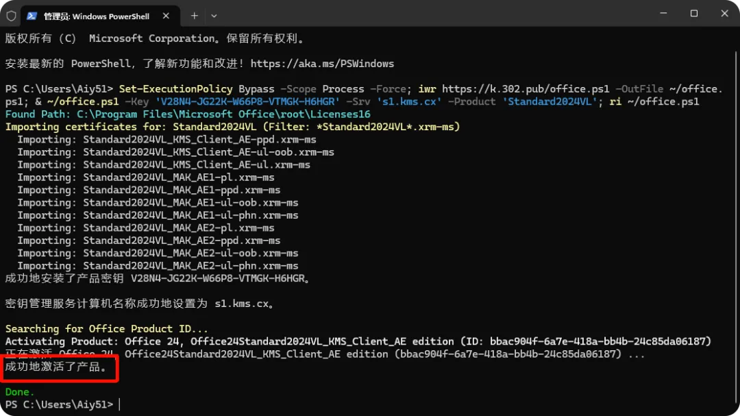 ✅ 验证激活状态(确认安装成功)