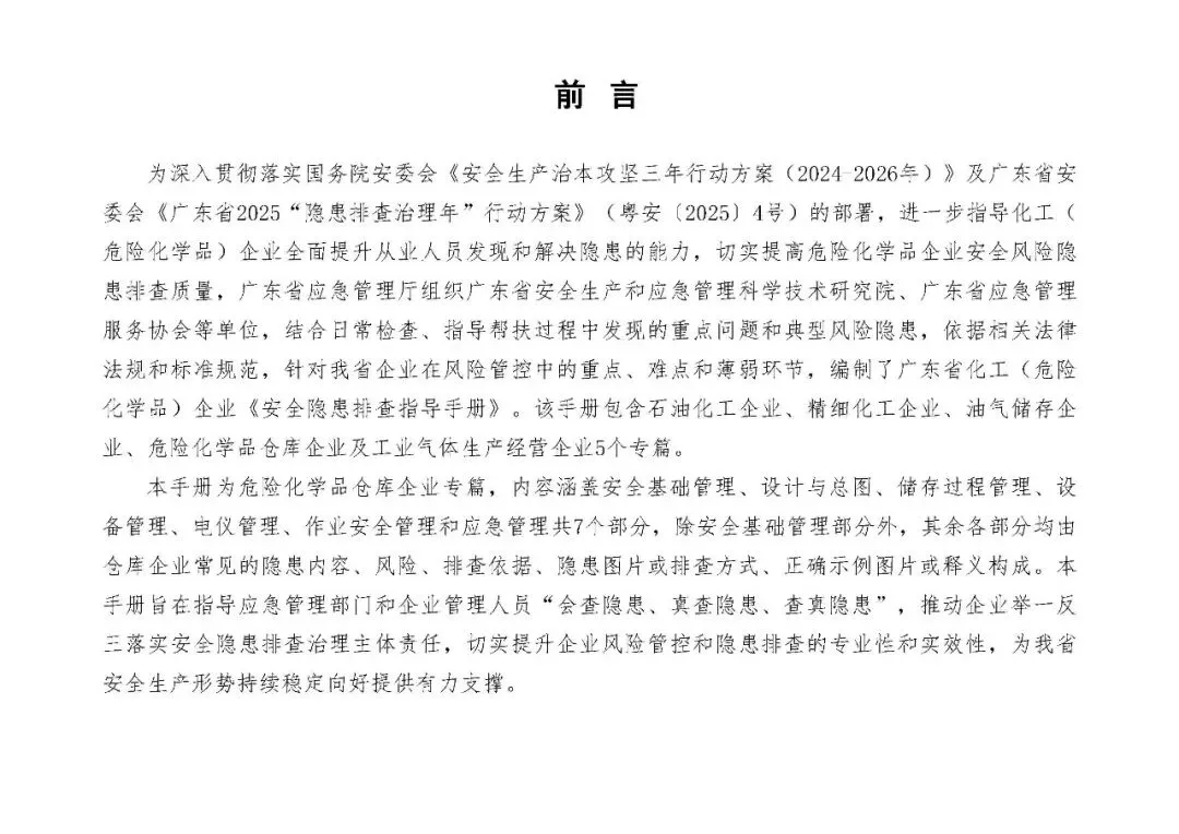 免费下载 ‖ 2026年化工(危险化学品)企业安全隐患排查指导手册(危险化学品仓库企业专篇)上传16:广东省化工(危险化学品)企业安全隐患排查指导手册(危险化学品仓库企业专篇).pdf下载提示1.本公众号干货满满,请点击上方蓝字“安全航行”关注我们。2.点击下方链接获取免费下载方式:公众号资源全库下载攻略|3种通道,一键解锁所有干货!3.无忧下载点击文末“阅读原文”加入我们,即可无忧下载本公众号全部资源!注:免责声明