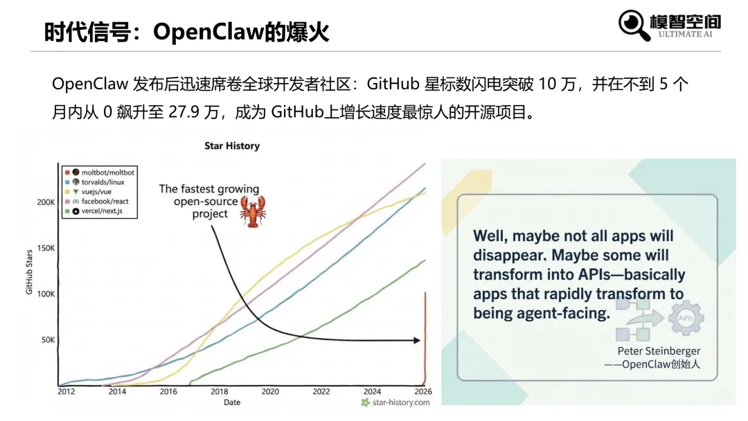 - OpenClaw 基础:开源本地 AI 操作系统,由奥地利程序员快速开发,GitHub 爆火,可桥接通讯软件与 AI 代理完成任务。