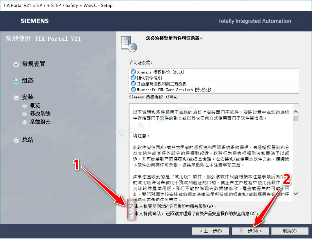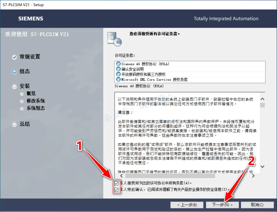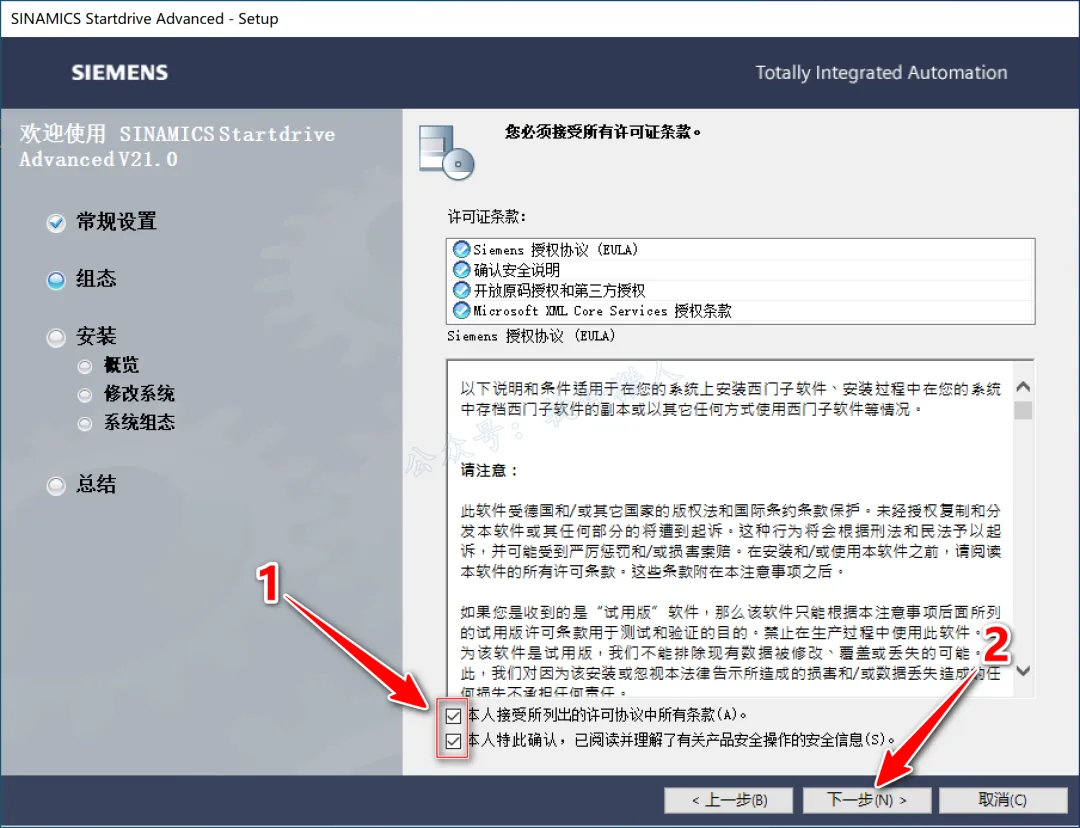 12.勾选【本人接受...】和【本人特此确认...】,点击【下一步】。