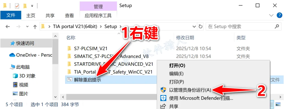 19.回到安装包解压后【Setup】文件夹,鼠标右击【解压重启提示】选择【以管理员身份运行】。