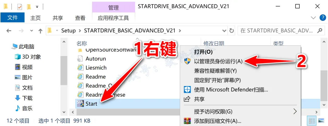 6.鼠标右击【Start】选择【以管理员身份运行】。