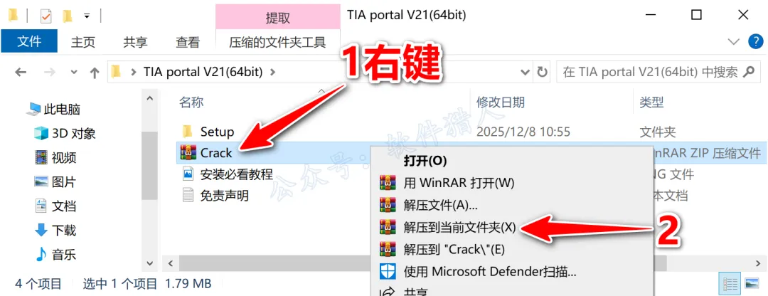 51.回到安装包解压后的文件夹,将【Crack】压缩包解压到当前文件夹。