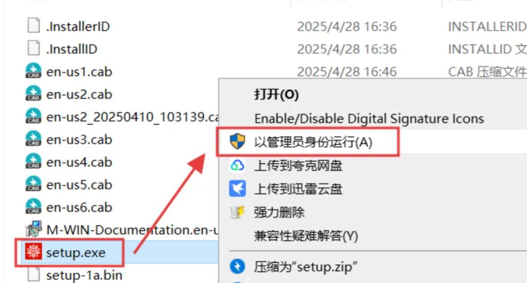 4.选中【setup】程序,鼠标右键选择【以管理员身份运行】。