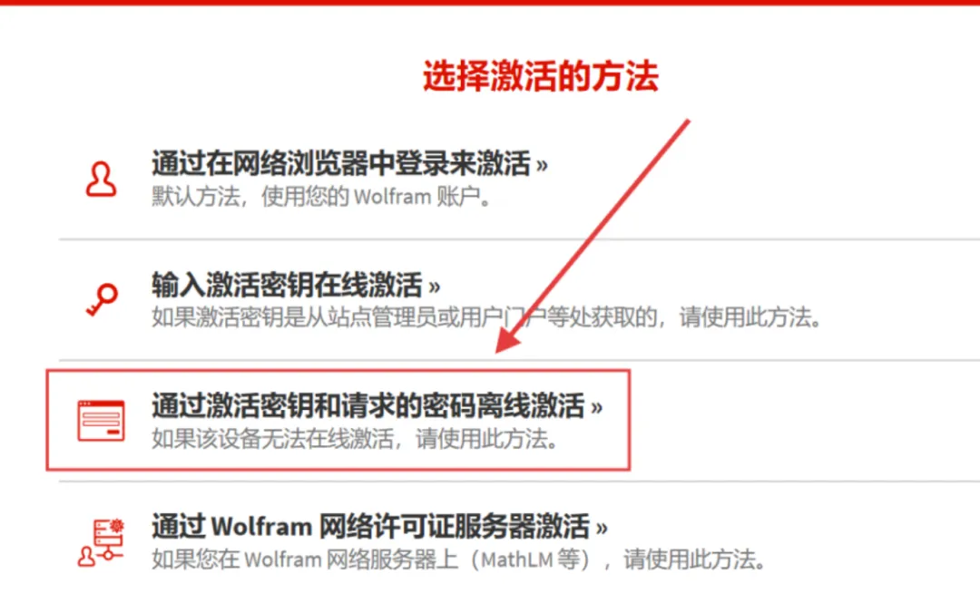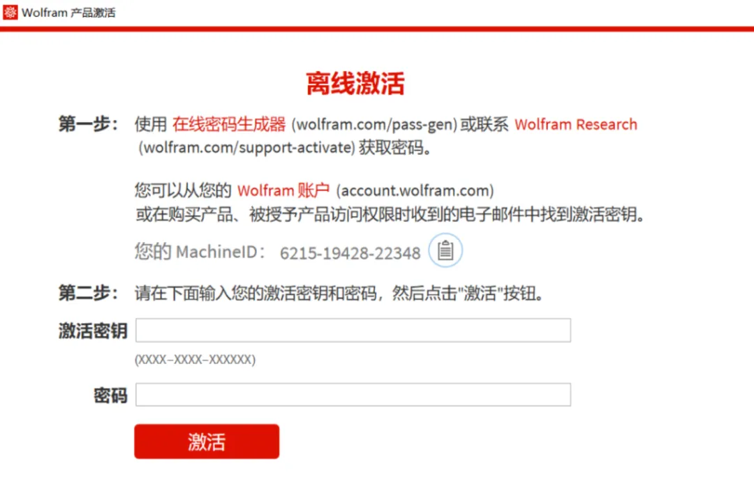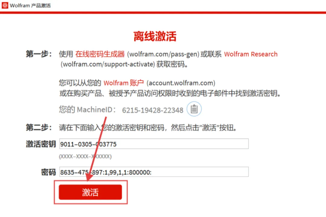 14.点击【通过激活密钥和请求的密码离线激活】。
