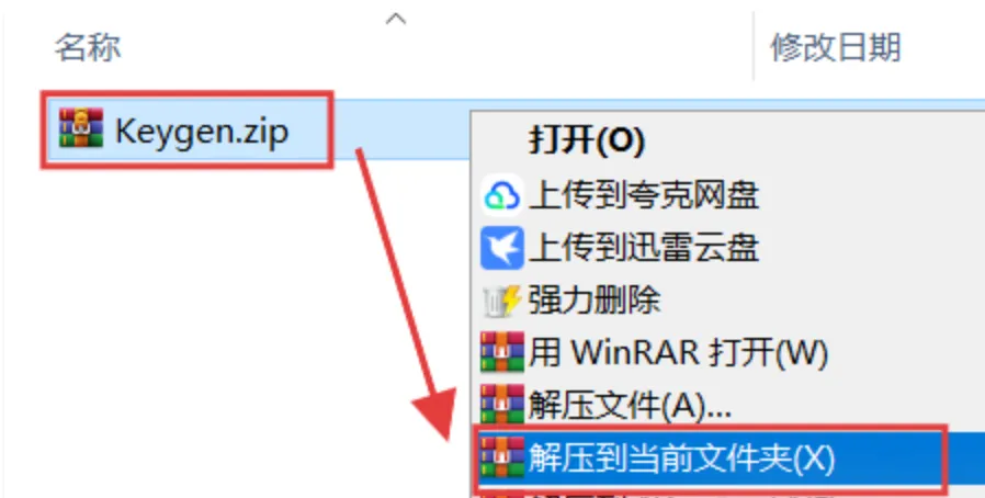 17.选中【Keygen】压缩包,右键【解压到当前文件夹】。