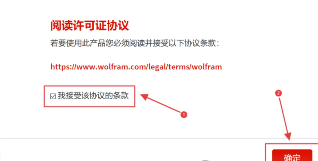 23.弹窗先勾选【我接受该协议的条款】,然后点击【确定】。