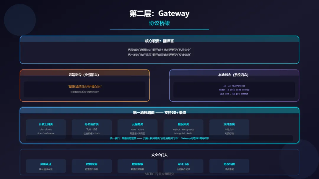 在云端大脑和本地执行之间,需要一个"翻译官",这就是Gateway。