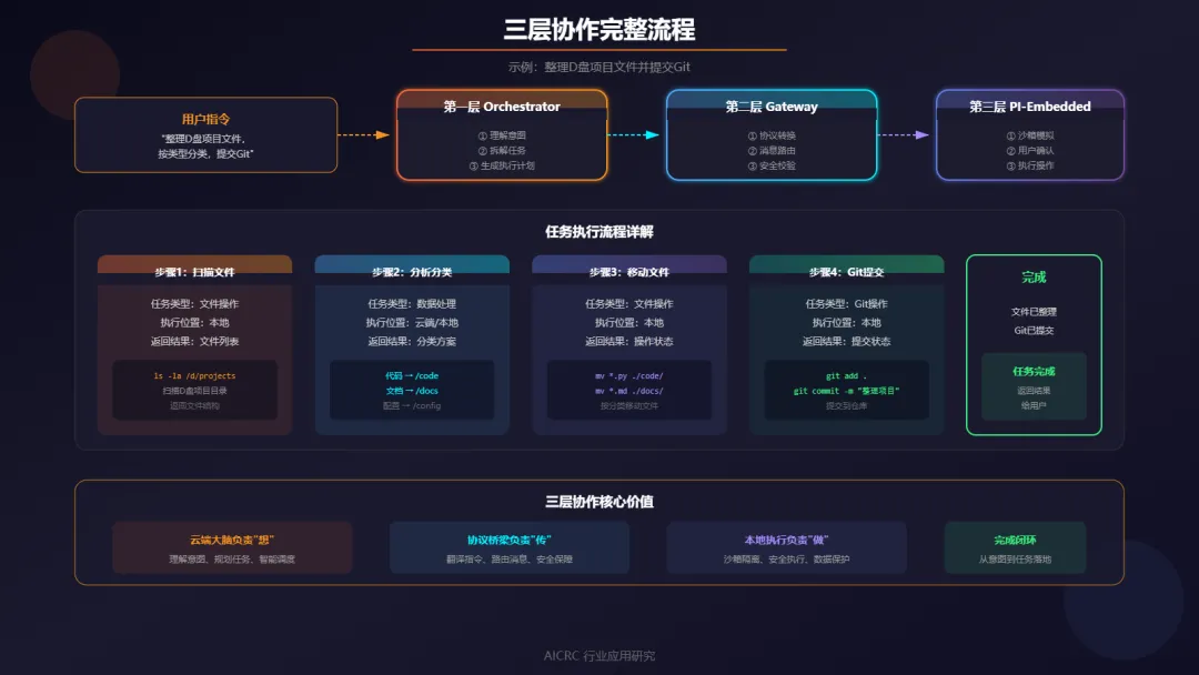 最终,三层架构实现了一个完整的闭环:从用户意图到任务落地。