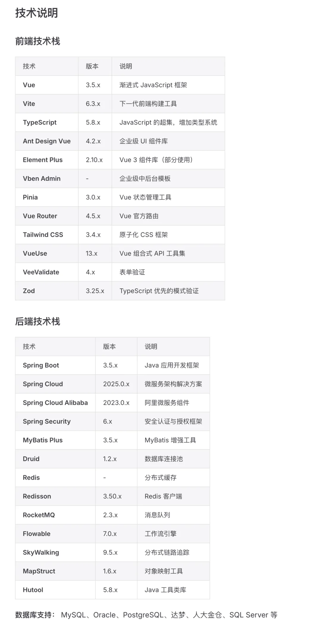 docs/.vitepress/ # 站点配置index.md # 首页product/ # 产品功能文档目录index.md # 产品功能总览system.md # 系统管理bpm.md # 流程中心...guide/ # 开发指南目录index.md # 开发指南markdown-examples.mdapi-examples.mddemo/ # 在线体验目录index.mddonate/ # 捐赠目录index.mdhosting/ # 托管平台目录index.md