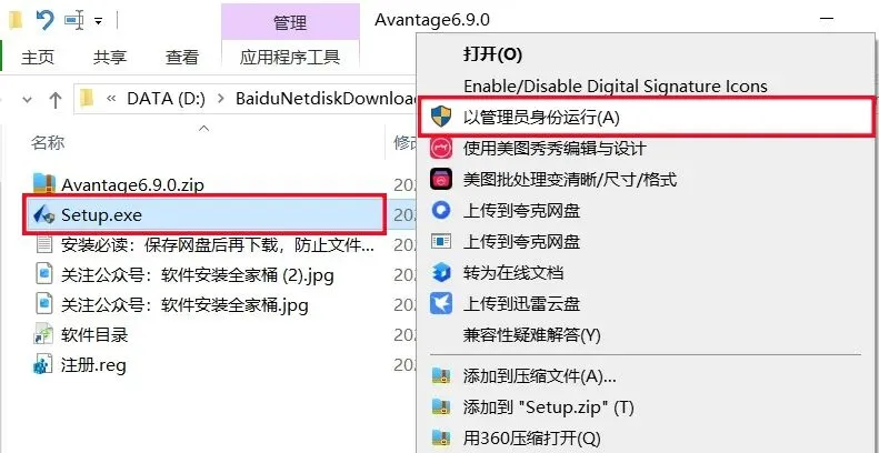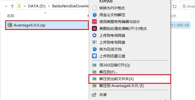 1、下载Avantage 6.9.0软件安装包到电脑上,右键选择【解压到当前文件夹】。