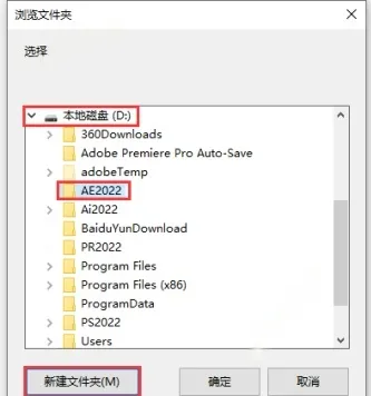 4.选择需要安装的磁盘,本例安装到D盘,点击【新建文件夹】并命名,点击确定。