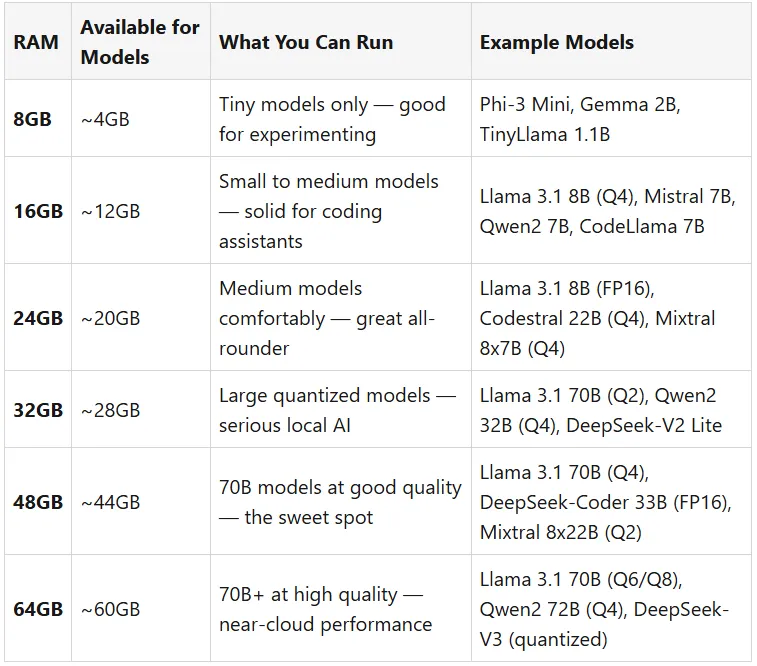 能运行什么?按内存等级划分的LLM 模型