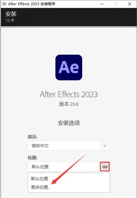 3.如需修改安装路径,点击【文件夹图标】,选择更改位置。