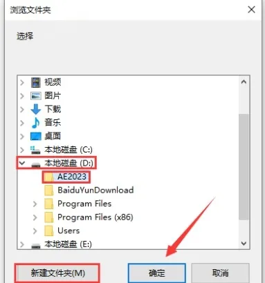 4.选择需要安装的磁盘,本例安装到D盘,点击【新建文件夹】并命名,点击确定。