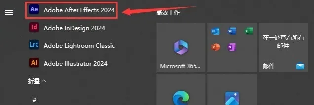 8.打开系统开始菜单,点击运行AE 2024软件。