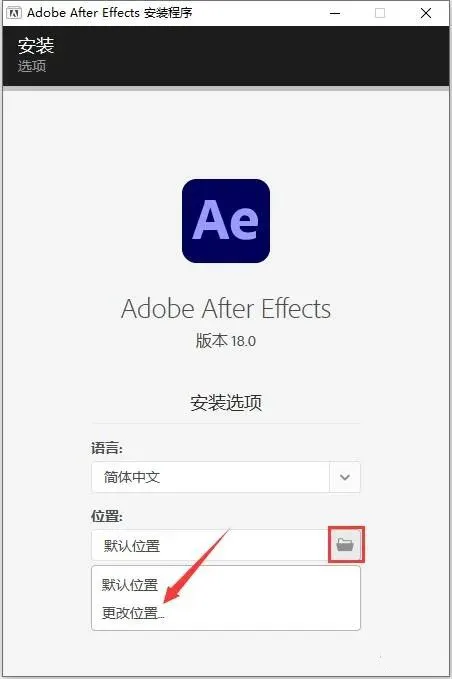 3.如需修改安装路径,点击【文件夹图标】,选择更改位置。