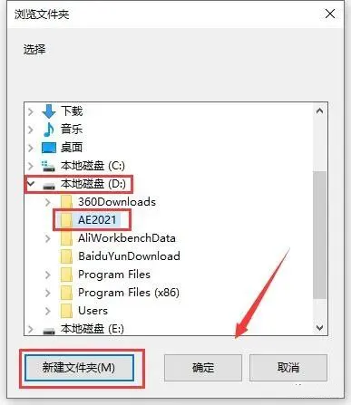 4.在弹出的对话框中,选择需要安装到的盘,本例安装到D盘,点击【新建文件夹】并命名,点击确定。