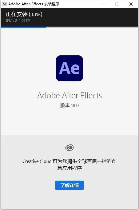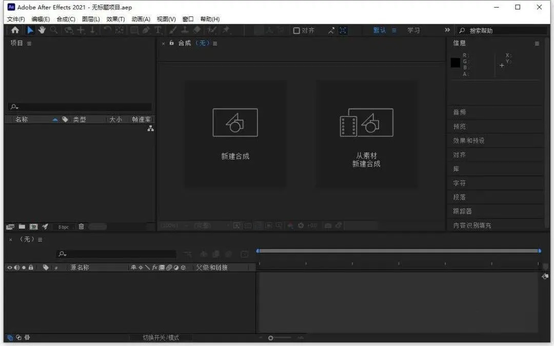 10.AE 2021直装版安装完成,运行界面如下。