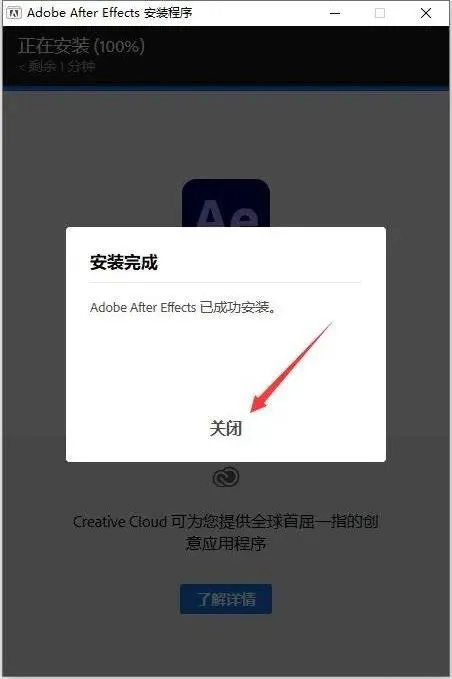 7.安装成功,点击关闭。