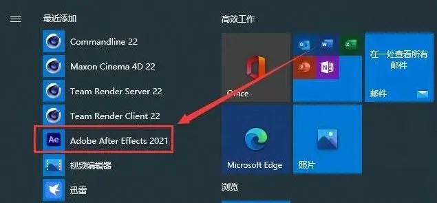 8.点击系统开始菜单,运行AE2021软件。