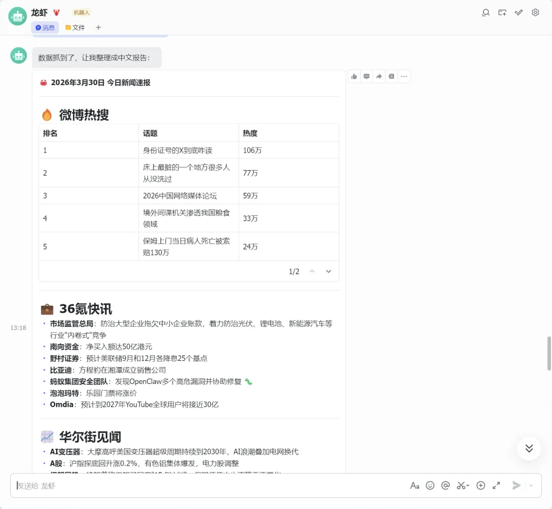 这条 skill 其实很容易火。原因也简单,很多人包括我自己,刚开始用龙虾的时候都会卡在一个很朴素的问题上:我现在该拿它干嘛? 写代码不是每个人都天天要写,复杂自动化也不是人人一上来就会折腾。那最顺手、最容易普及的场景是什么?就是看新闻。