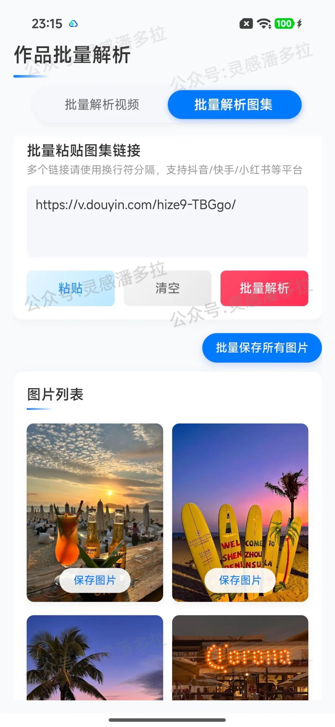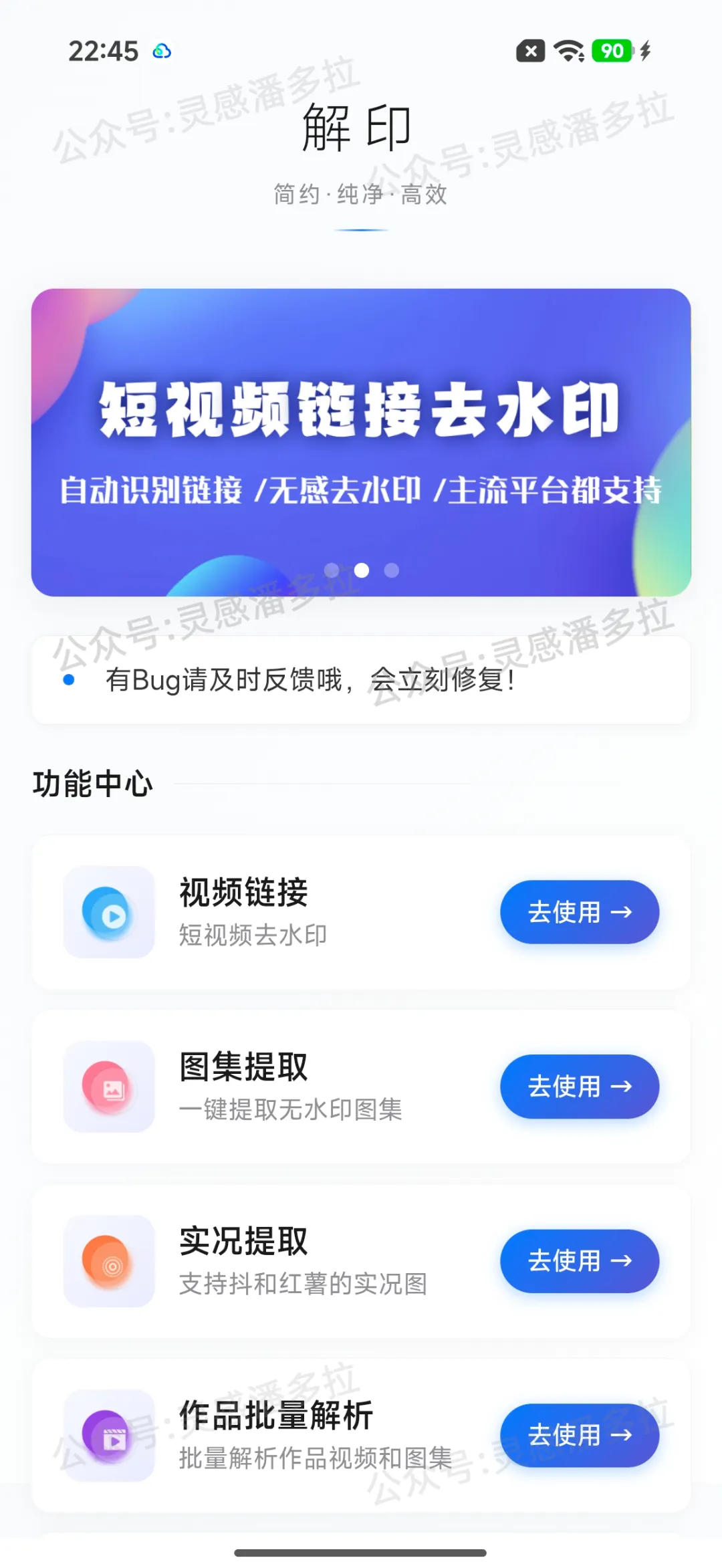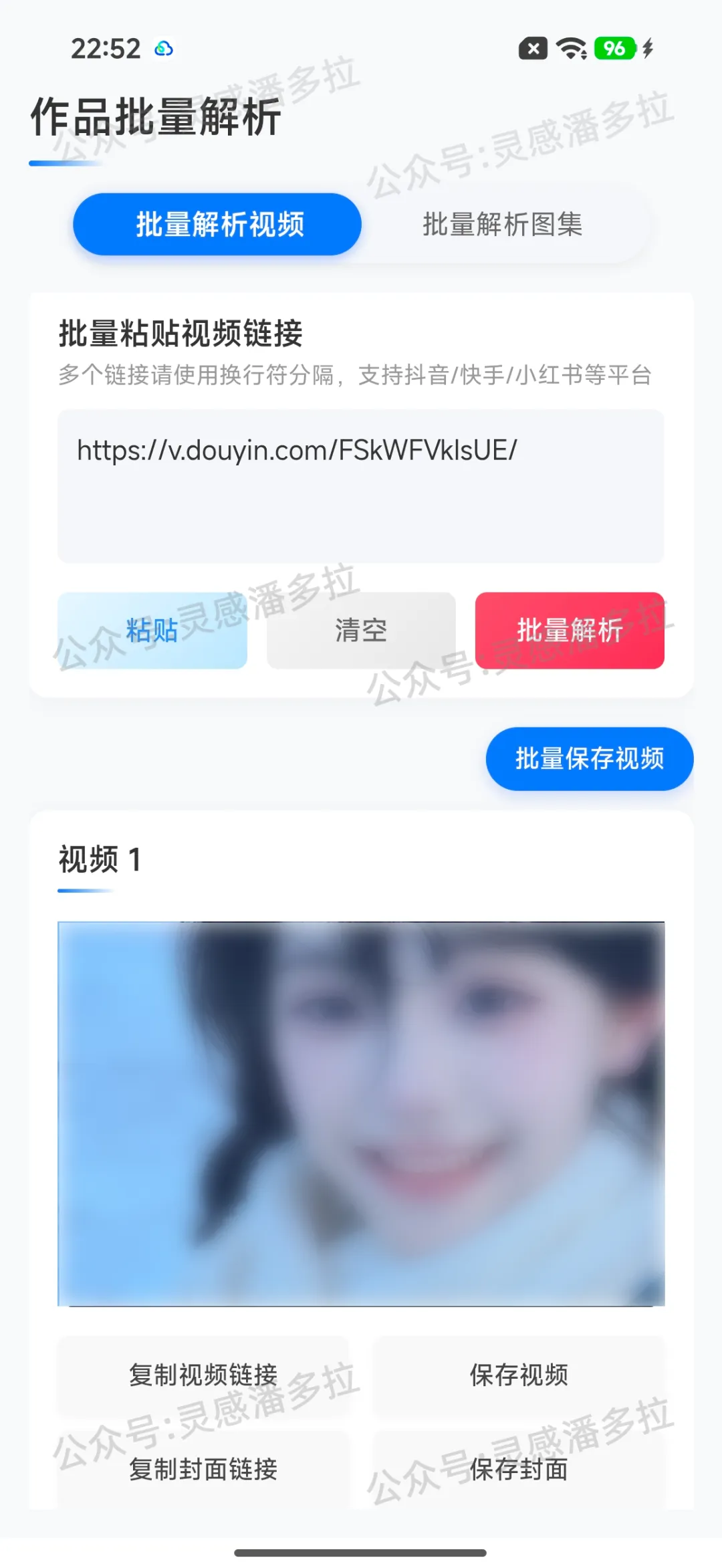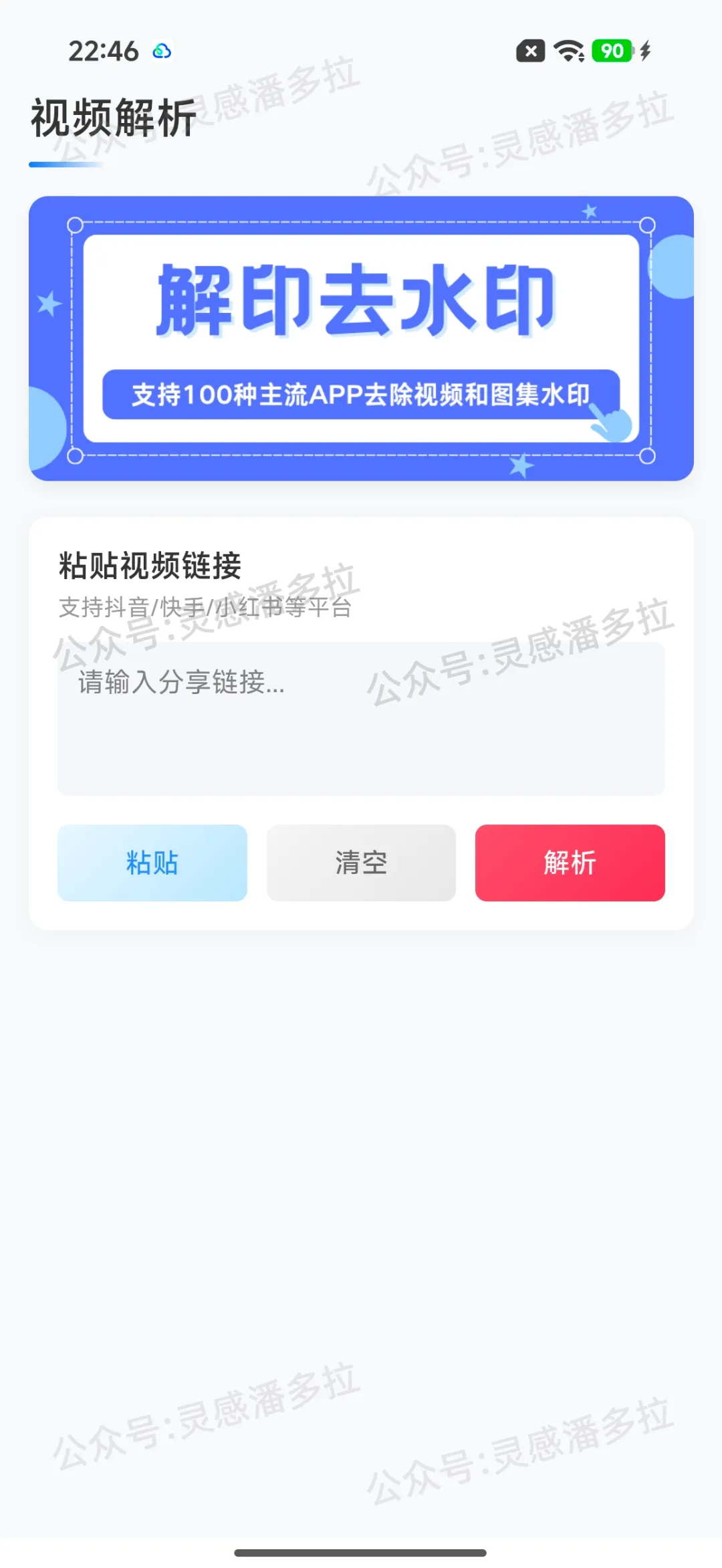 支持抖音、快手、小红书、微博、B站、西瓜视频等主流平台,复制视频或图集链接,粘贴到APP内即可解析去水印。