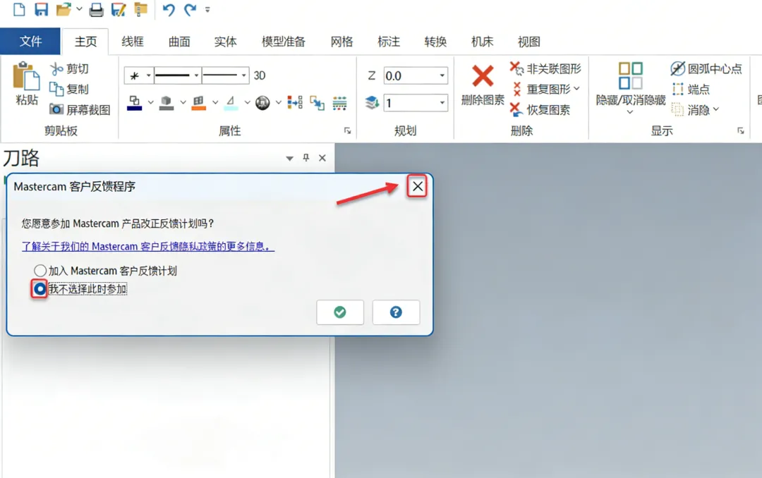 23.选择【我不参加...】,点击右上角【X】关闭。