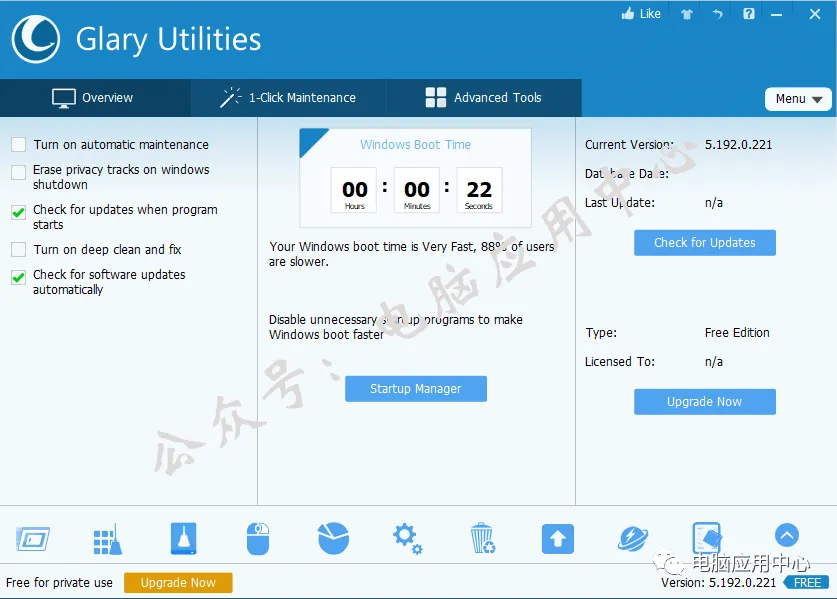 glaryutilities免激活中文绿色便携版,默认中文, 取消更新,优化默认设置