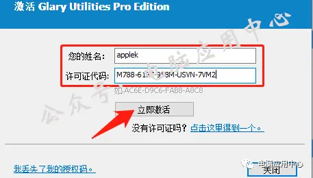 将注册码和用户名复制粘贴到相应的框内,点击“立即激活”,然后关闭对话框